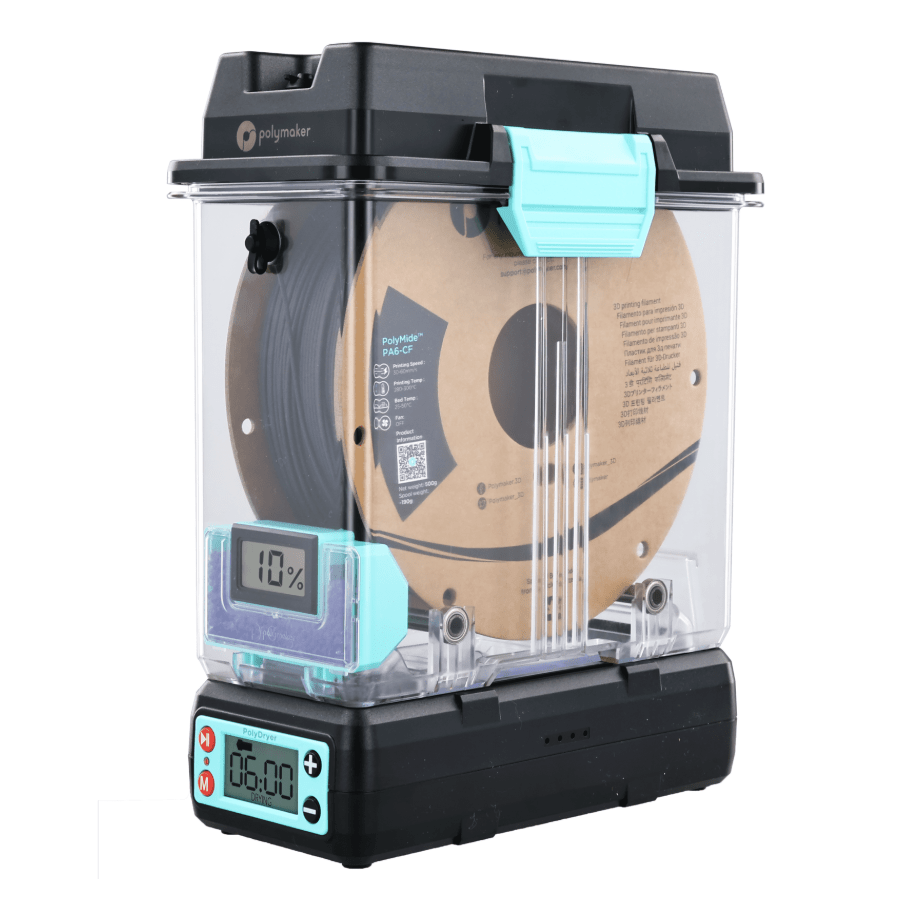 PolyDryer är Polymakers modulära 2-i-1-lösning för effektiv torkning och långvarig förvaring av filament. Oavsett om du vill skydda nya spolar eller återuppliva gamla, erbjuder PolyDryer en enkel och smart väg till bättre utskrifter – varje gång. Den lufttäta designen kombinerat med cirkulerande 360°-luftflöde och tre justerbara effektlägen gör att du alltid har torrt och printredo filament inom räckhåll.